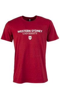 Western Universal T-Shirt Crimson AS Colour Tee with Western Sydney University printed chest logo. Enduring comfort in a regular fit, crafted from 180 GSM 100% combed cotton. Featuring neck ribbing, side seams, and double needle hems for durability and minimal shrinkage, it's a timeless... MSRP: Was : Now : $44.00 Choose Options